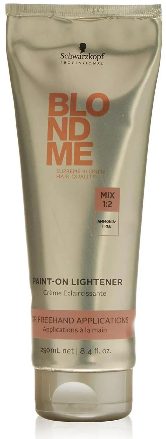 Schwarzkopf BlondMe Paint-On Lightener For Freehand Application 8.4 oz/250ml Schwarzkopf Blond Me Paint on Lightener. This BlondMe Paint on Lightener cream allows the creation of highlights through freehand techniques, effectively eliminating creative limitations. The result is soft, seamless highlights up to 7 shades lighter. In addition, the freehand application produces a more naturally beautiful sun-kissed look.