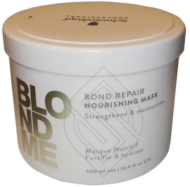 • Schwarzkopf BlondMe Bond Repair Nourishing Mask is a professional intensive treatment designed for blonde, lightened, bleached, and highlighted hair. Formulated with advanced Bond Repair Technology, it deeply nourishes while helping to rebuild and strengthen the hairs internal bonds, reducing breakage and improving resilience.