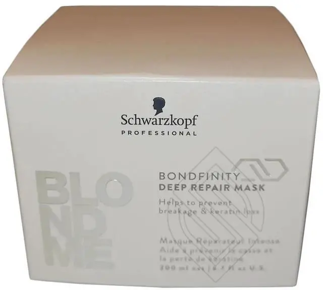 Schwarzkopf BlondMe Bondfinity Repair Mask is a professional intensive treatment designed for all hair types, including blonde, lightened, and chemically treated hair. Infused with advanced Bonding Technology, it works to rebuild and strengthen the hairs internal structure, reducing breakage and improving resilience from root to tip.