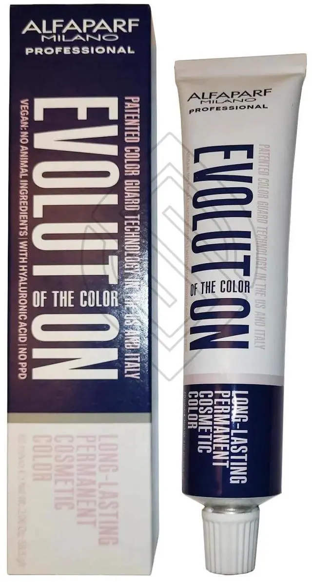 • Alfaparf Evolution of the Color Cube3D technology: 3 exclusive components in 3 subsequent phases: 1. MULTI LAMELLAR VEHICLE protects pigments during mixing to prevent them from oxidizing. More pigments penetrate deeper into the hair shaft, causing a reduced opening of the scales. It also helps to balance the level of moisture in the fiber. 2. HYALURONIC ACID forms a lattice around the hair allowing a perfectly even distribution of the mixture and perfect adherence to the shaft. 3. HYPER INTENSE COLOR SYSTEM The micro-pigments penetrate into the hair shaft and blend to form even larger and more complex molecules. RESULT: Excellent white hair coverage with intense, defined, and even tones with unparalleled durability of color.