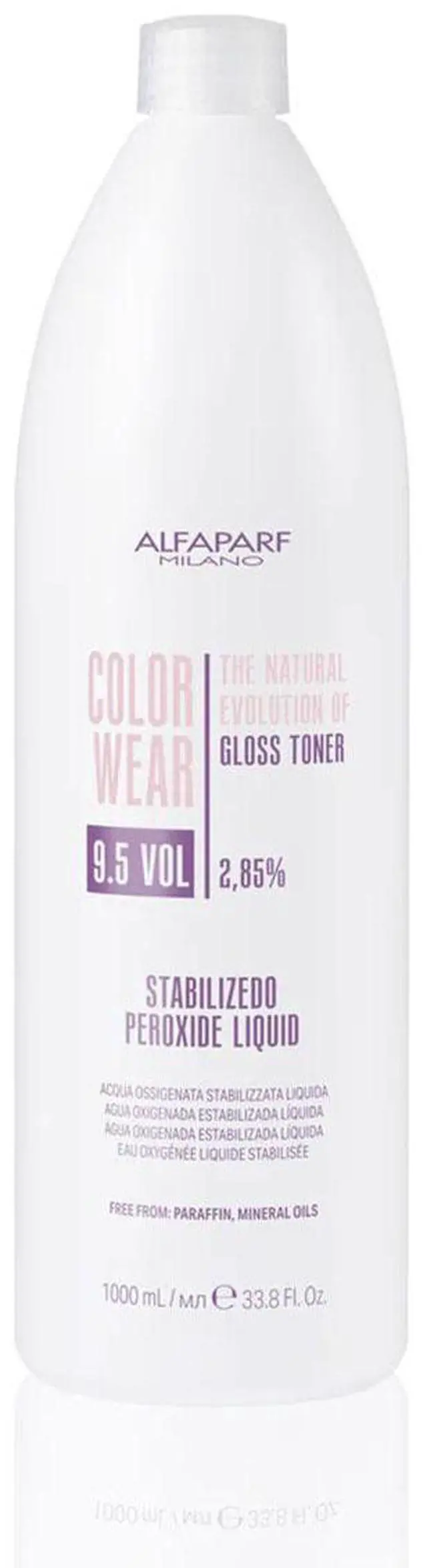 Alfaparf Milano Color Wear Gloss Toner 9.5 Volume Stabilized Peroxide Liquid, specially designed to be used exclusively with Color Wear Gloss Toner. Its texture consists of a liquid mixture that is ideal for fast and convenient application.