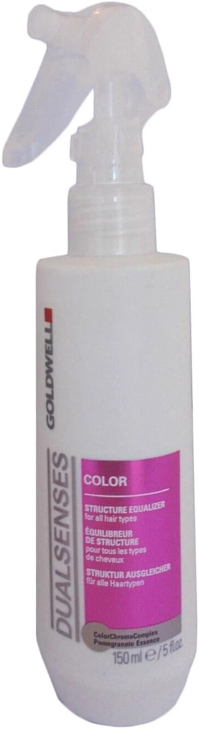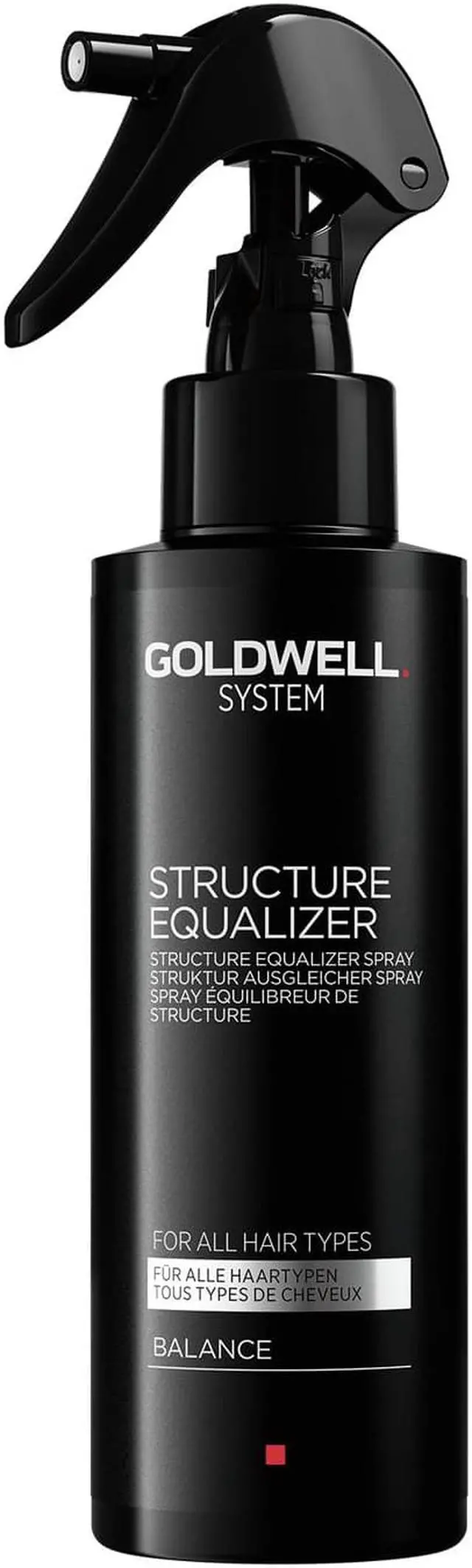 Goldwell Structure Equalizer Spray Structure Equalizer 5.0 Ounce 150 Gram This provides weightless care for normal to fine color-treated hair. This strengthens hair, providing improved combability and color protection with ColorChromaComplex with Pomegranate Essence. Equalizes structural differences and optimizes color deposit on hair.
