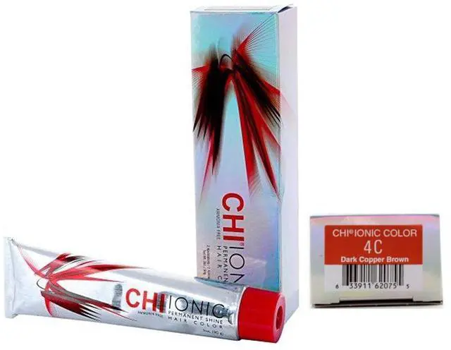 Farouk CHI Ionic Permanent Shine Color Copper Brown 4C 3 Ounce Farouk Systems CHI Ionic Permanent Shine Hair Color offers reliability and confidence and most of all the simplicity to create successful and profitable color services in your salon. This revolutionary color is Ammonia Free providing a pleasant and safer working environment to you, your client, and to our environment. CHI 44 with Ionic Technology anchors the color deep inside of the hair so your client can enjoy unparalleled longevity, shine, and condition.