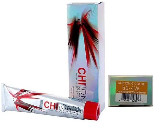Farouk CHI Ionic Permanent Shine Color Dark Brown Natural Warm 50-4W 3 Ounce Farouk Systems CHI Ionic Permanent Shine Hair Color offers the reliability and confidence and most of all the simplicity to create successful and profitable color services in your salon. This revolutionary color is Ammonia Free providing a pleasant and safer working environment to you, your client, and to our environment. CHI 44 with Ionic Technology anchors the color deep inside of the hair so your client can enjoy unparalleled longevity, shine, and condition.