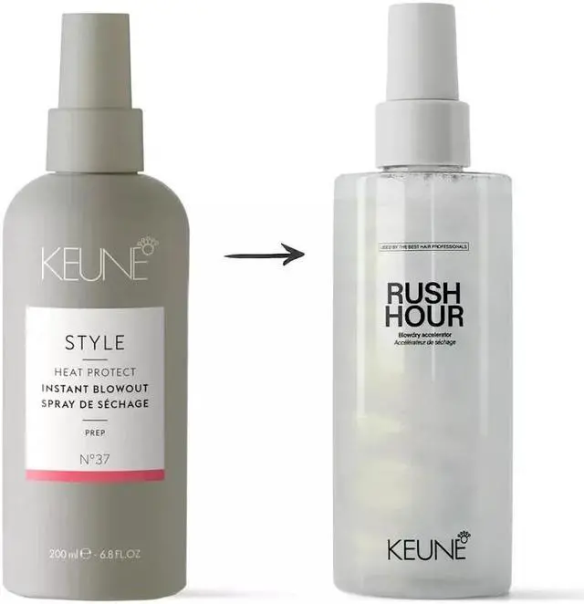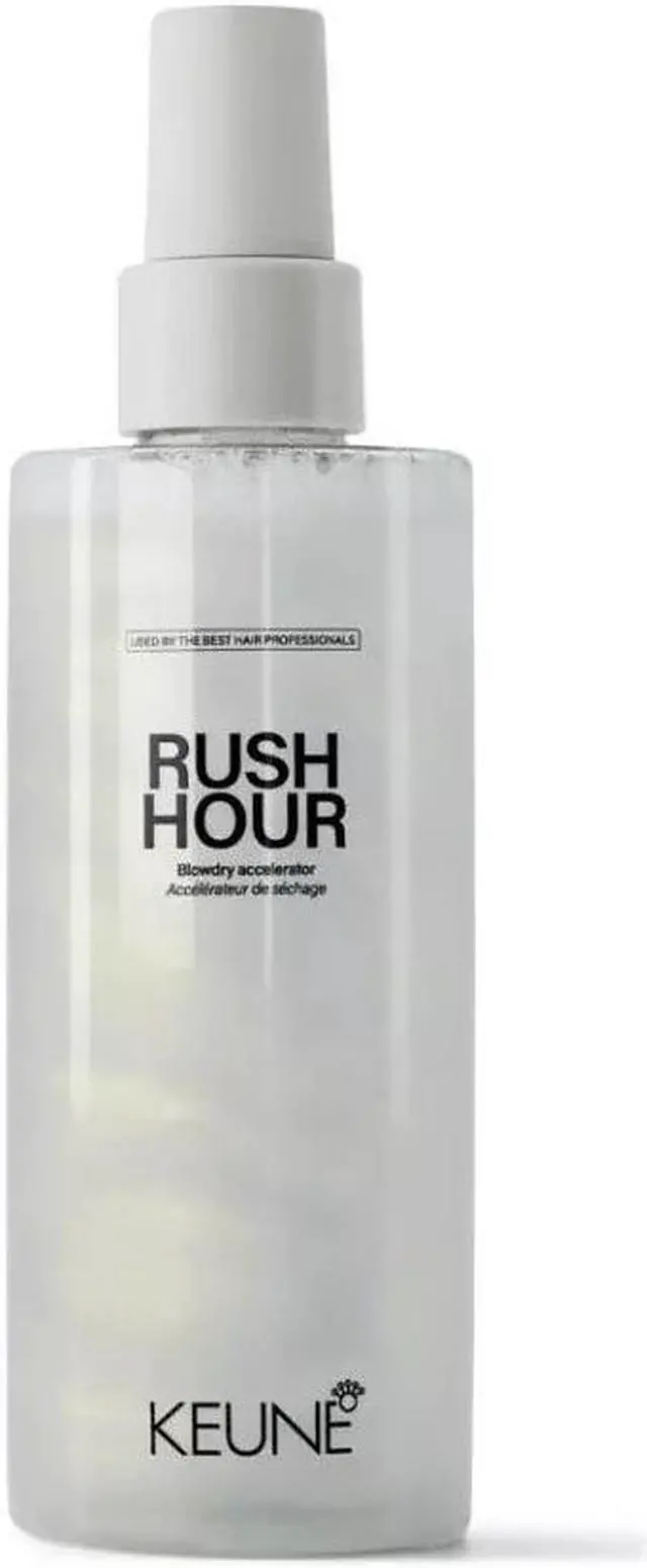 Supercharge your blowout with Keune's RUSH HOUR! This blow-dry accelerator cuts drying time, adds weightless body, and fortifies your locks with integrated Bond Fuser Technology. Heat protection up to 230°C/446°F. Suitable for all hair lengths and hair types.