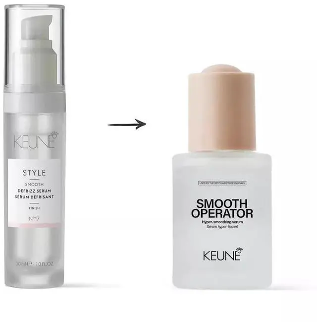 Introducing Keune's SMOOTH OPERATOR smoothing serum: a weightless nourishing formula designed to combat frizz and enhance shine by up to 89%*. Infused with vitamin E and vegetable proteins, it leaves your strands nourished and protected. Suitable for all hair lengths and hair types.
