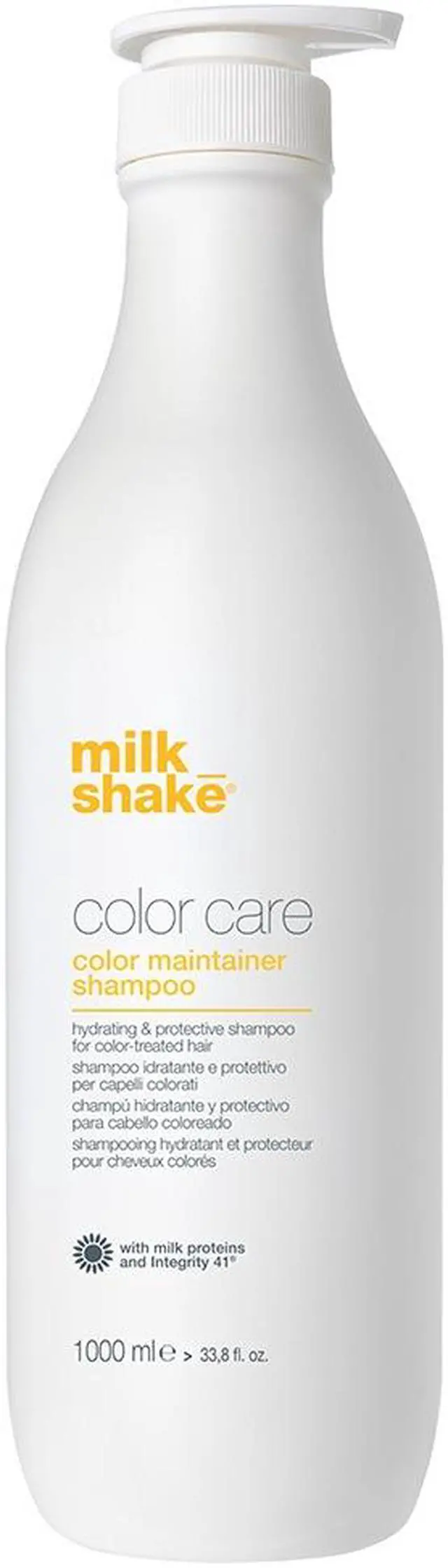 hydrating & protective shampoo for color-treated hair milk_shake color maintainer shampoo is ideal for maintaining the beauty and vitality of colored hair. It contains milk protein that deeply reconstructs hair, and special conditioning and hydrating agents that sooth and condition both scalp and hair. z. one concept's exclusive ingredient, Integrity 41, improves and extends hair color life. This shampoo has a pleasant fragrance of sweet milk, and leaves hair shiny, vital and conditioned.