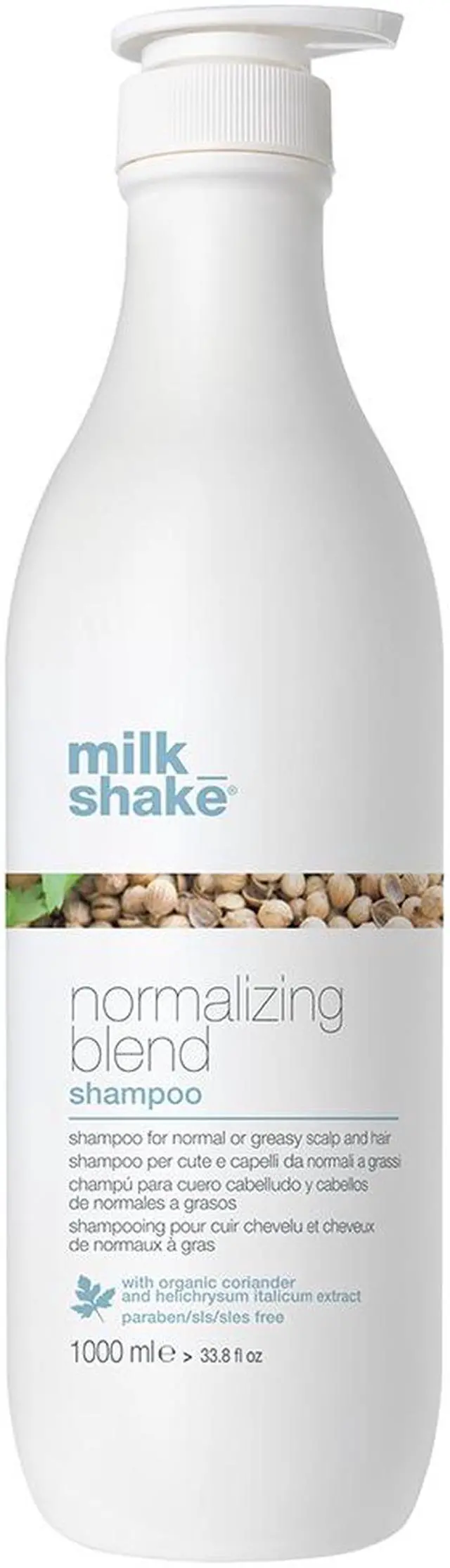 milk_shake normalizing blend shampoo is the professional solution to remove greasy residue with a deep normalizing action, whilst respecting the delicate physiological balance that governs sebum production in the scalp. milk_shake® normalizing blend shampoo is much more than just a simple cleanser or a beauty routine cleansing gesture. It's a real treatment for the hair and is unique in its amazing benefit for scalp and hair. Its formula with organic coriander and helichrysum extracts, cedar and coriander essential oils, and a balanced mix of delicate cleansers, cleanse deeply yet gently, removing sebum and oily residue delicately, improving the delicate and healthy balance of sebum production.