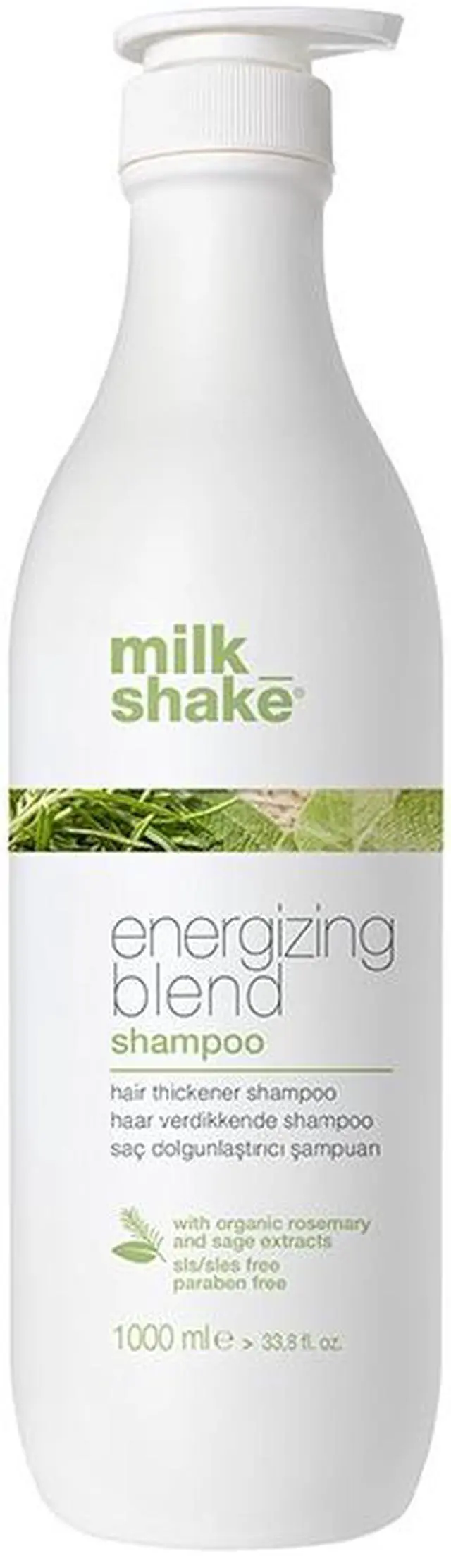 Milk Shake energizing blend shampoo is for fine, thinning and fragile hair, cleanses deeply but gently while respecting the scalp and hair. The natural powers in organic rosemary, sage and fioravanti balm extract purifies hair while stimulating the scalps micro-circulation to create an optimal environment for new hair growth. The blend of botanical extracts and special conditioners invigorates the hair stem and gives softness. Panthenol provides more density to the hair, and essential oils and eucalyptus instil a pleasant energizing feeling, leaving the scalp refreshed.
