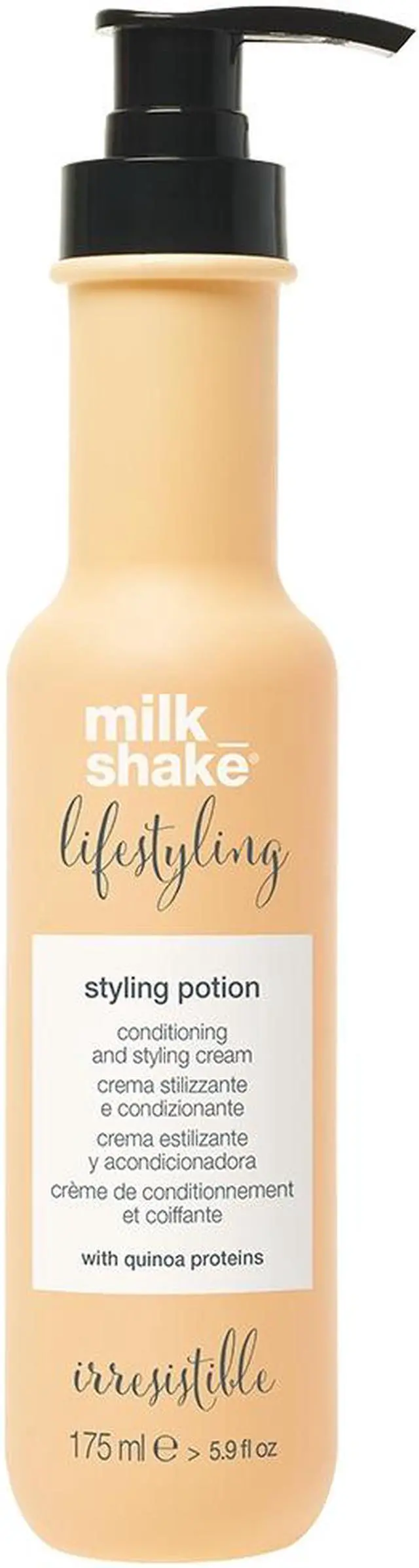 milk_shake lifestyling styling potion is a conditioning and styling cream. Gives light support and an immediate conditioning effect to all hair types. It is a versatile and unique product that smoothens the cuticle of the hair, giving the hair natural body.