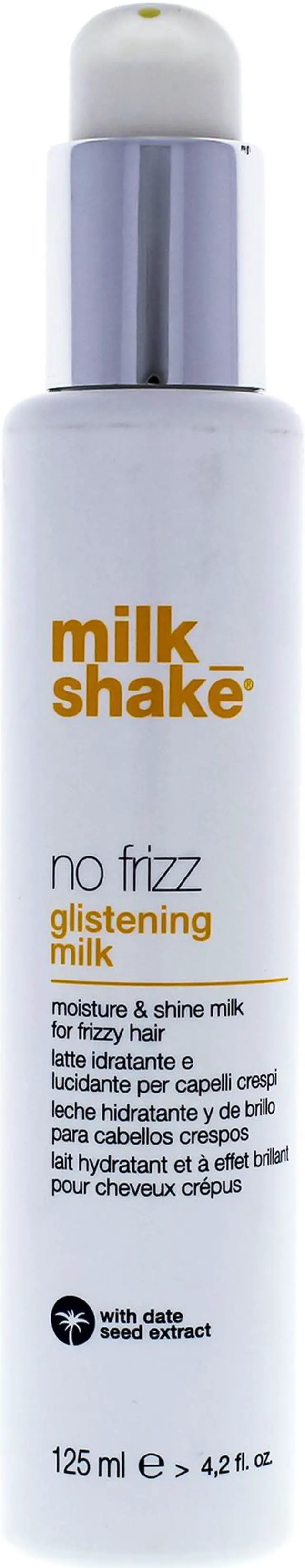 Milkshake No Frizz Glistening Milk has been especially formulated to eliminate frizz and static during styling. It will protect hair from thermal styling tools and adds extreme softness, shine, manageability and comb-ability whilst helping to maintain optimum hydration balance. Milkshake No Frizz Glistening Milk has an excellent conditioning action and preserves color integrity thanks to it's antioxidant ingredients.