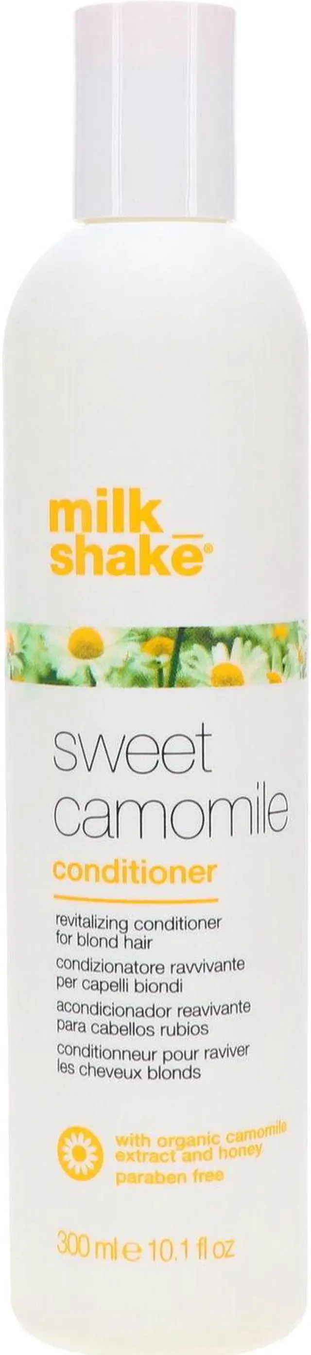 milk_shake sweet camomile conditioner is a paraben-free revitalizing conditioner for blonde hair that softens and detangles. Revives highlights, increases manageability and enhances shine and brilliance. The formula in milk_shake sweet camomile conditioner combines the lightening and softening properties of organic camomile extract with nourishing organic honey.