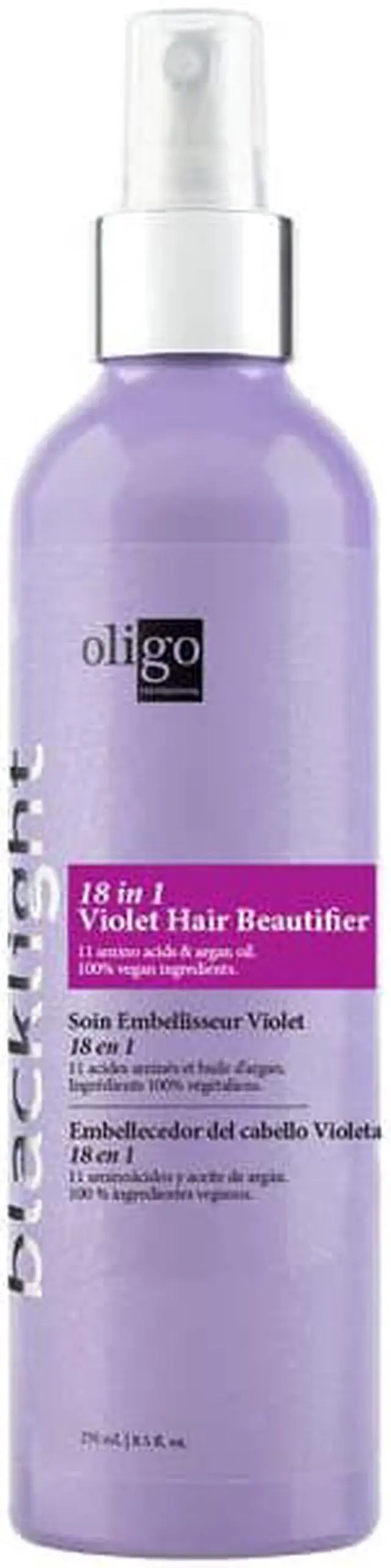 The Oligo Blacklight 18 in 1 Violet Hair Beautifier is the ideal spray to maintain a perfect blonde! It prepares, protects and beautifies while offering 18 essential benefits. PLUS, it tones unwanted yellow and copper tones to restore your highlights and keep your blonde shining!