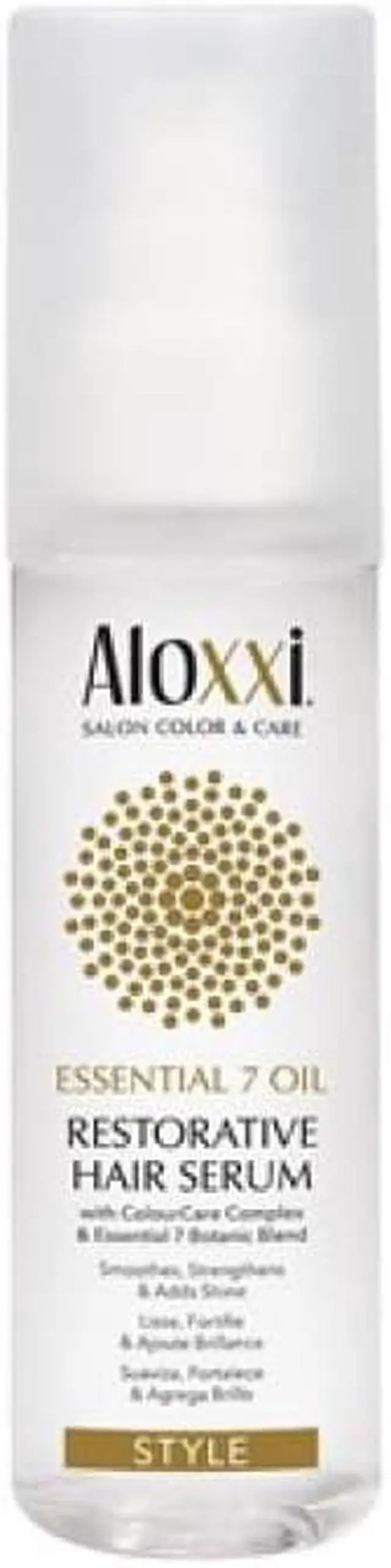 Aloxxi Essential 7 Oil Restorative Hair Serum is made with a blend of seven botanic oils that help all types of color-treated hair achieve beautiful softness, shine, and color protection. As a conditioning, styling, and finishing tool, it reduces styling time by strengthening the hair, detangling, and improving manageability. Aloxxi's unique formula protects hair color from fading by helping to block damaging UV rays and will not leave behind an oily feeling. Hair looks and feels healthy, smooth, silky, and conditioned.