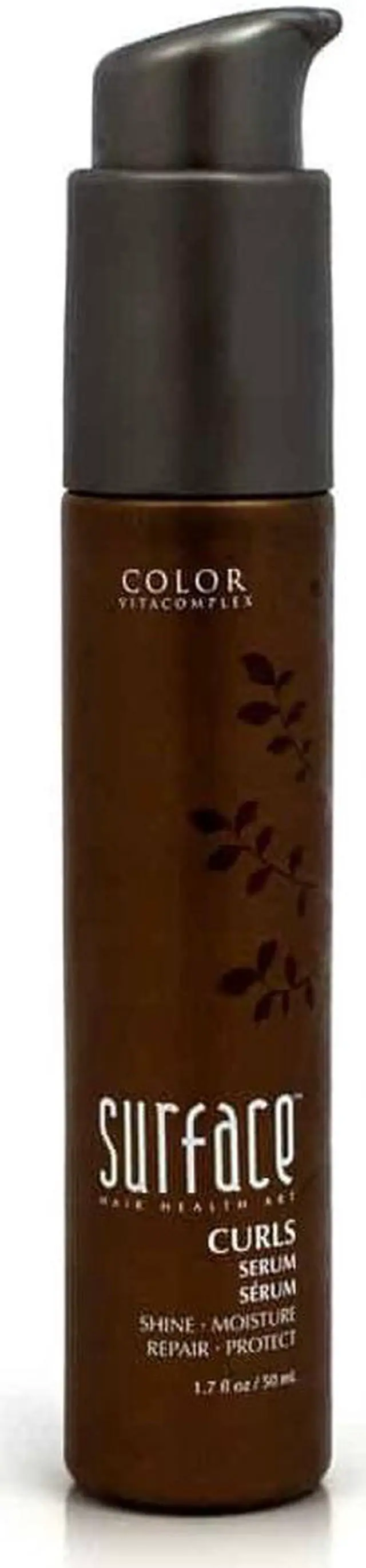Surface's Curls Serum is a deep moisturizing, conditioning styling serum that instantly smooths frizz and shines hair without heavy oils or plastics.