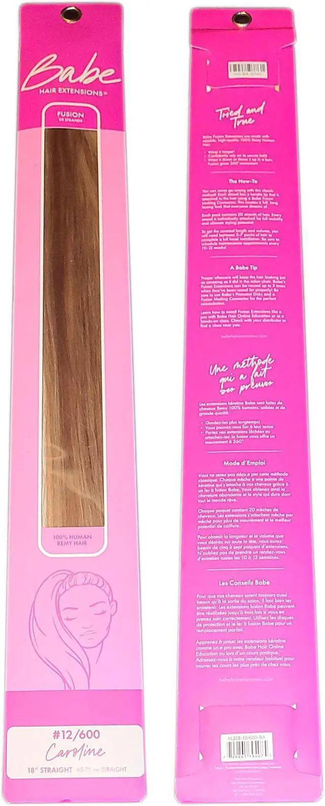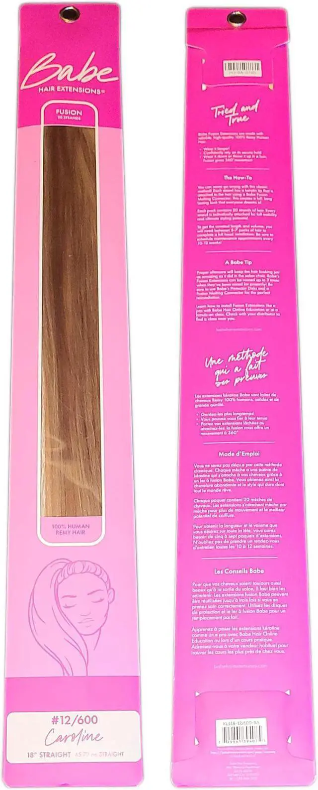 Babe Fusion 18 Inch #12/600 (Caroline) Hair Extensions Straight Colors 20 Pieces Ounce Gram Fusion Hair Extensions look and feel so natural since the extension strand is fused to hair using a keratin bond. Keratin is safe, hair-friendly, and durable. Your hair will have amazing 360-degree movement and youll have no fear of slippage. Fusion extensions are perfect for long-lasting use because they are made of 100% human Remy hair of the finest quality. Each strand comes pre-bonded and ready for use. For removing these extensions use Keratin Bond Remover that softens the bond.