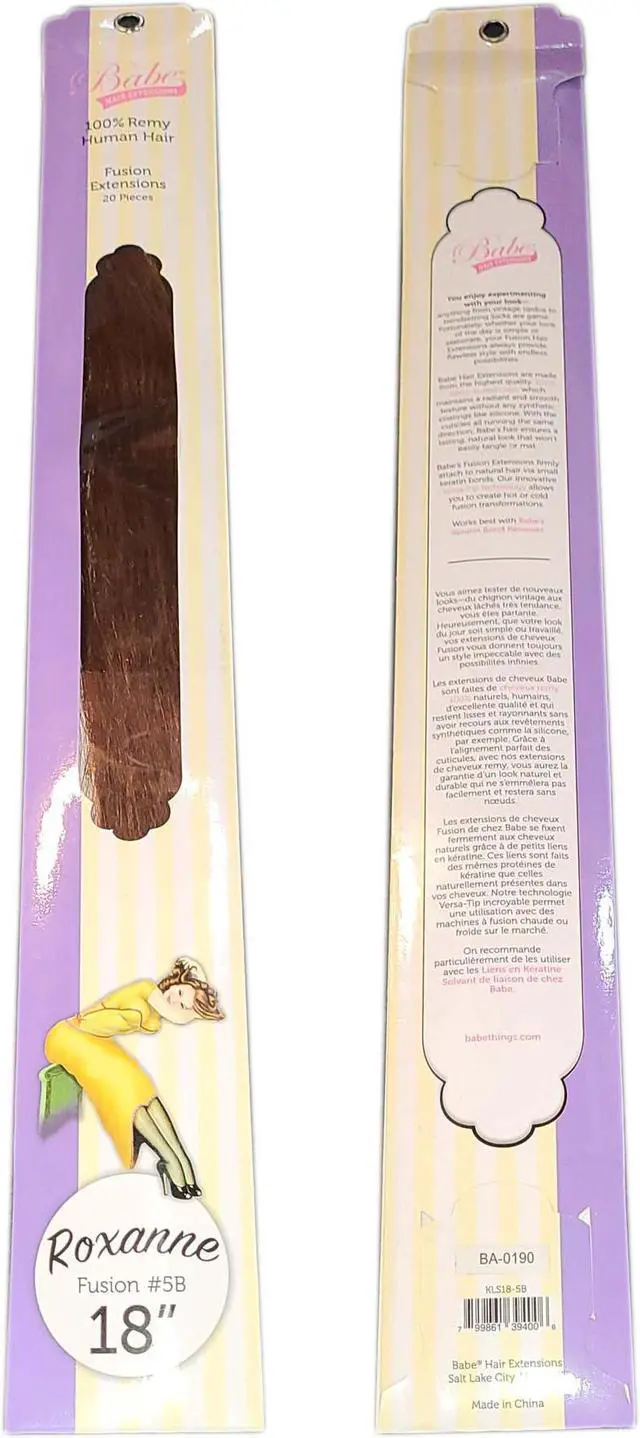 Babe Fusion 18 Inch #5B (Roxanne) Hair Extensions Straight Colors 20 Pieces Ounce Gram Fusion Hair Extensions look and feel so natural since the extension strand is fused to hair using a keratin bond. Keratin is safe, hair-friendly, and durable. Your hair will have amazing 360-degree movement and youll have no fear of slippage. Fusion extensions are perfect for long-lasting use because they are made of 100% human Remy hair of the finest quality. Each strand comes pre-bonded and ready for use. For removing these extensions use Keratin Bond Remover that softens the bond.