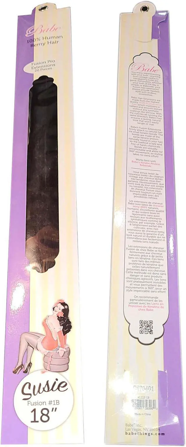 Babe Fusion 18 Inch #1B (Susie) Hair Extensions Straight Colors 20 Pieces Ounce Gram Fusion Hair Extensions look and feel so natural since the extension strand is fused to hair using a keratin bond. Keratin is safe, hair-friendly, and durable. Your hair will have amazing 360-degree movement and youll have no fear of slippage. Fusion extensions are perfect for long-lasting use because they are made of 100% human Remy hair of the finest quality. Each strand comes pre-bonded and ready for use. For removing these extensions use Keratin Bond Remover that softens the bond.
