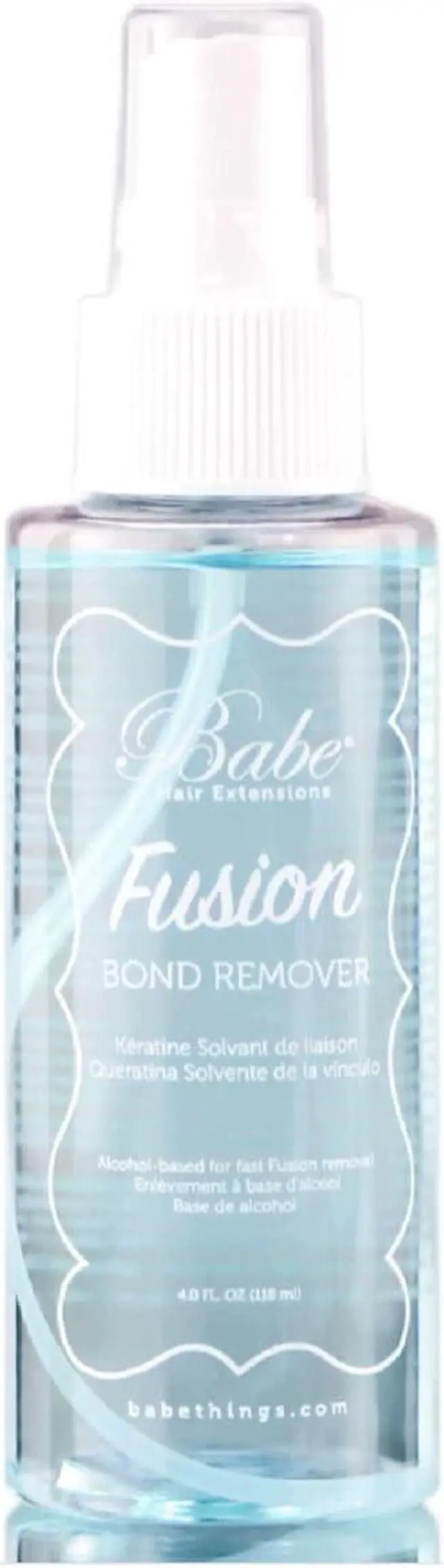 Babe 4oz Fusion Extensions Alcohol-Based Keratin Bond Remover When its time to remove those beautiful Fusion extensions, we have the solution you need. Its our Keratin Bond Remover, which breaks down the keratin bonds so you can slide the hair extensions out of the natural hair. Dab a small bit on the keratin bond. Let it sit for a few seconds, then use the Hair Extension Tool to squeeze the bond until it breaks and loosens. After the extensions are removed, wash your hair. Dont use the Keratin Bond Remover to remove Tape-In Extensions.