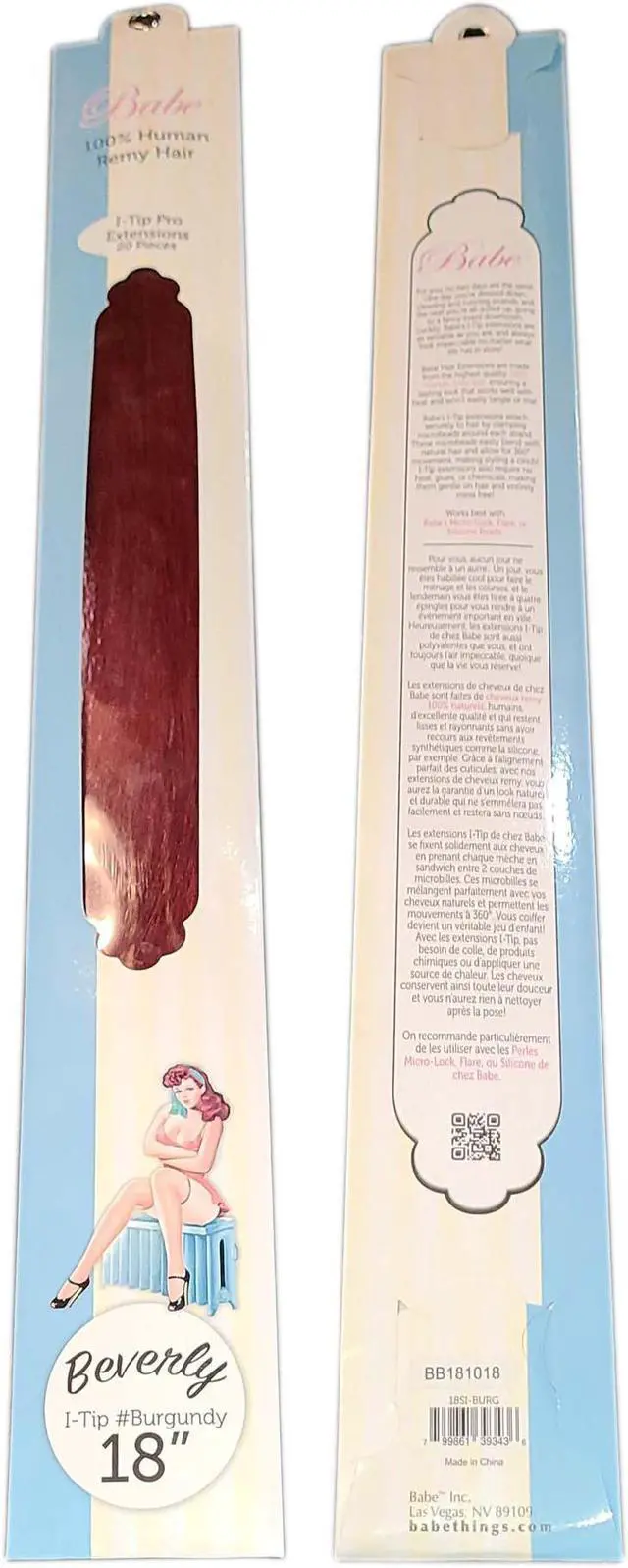 Babe I-Tip Pro 18 Inch #Burgundy (Beverly) Hair Extensions Straight Color 20 Pieces Ounce Gram These hair extension strands are easy to install. They ofer 360 degree movement of I-Tip Extensions. This helps to increase hairs volume, length, and versatility. This amazing method has absolutely no chemicals, no glue, and no heat. The beads are easy to hide and are available in 5 different colors. Microbeads are clamped to securely hold each hair extension strand in place. That means your hair can be long and full without the worry of slippage.
