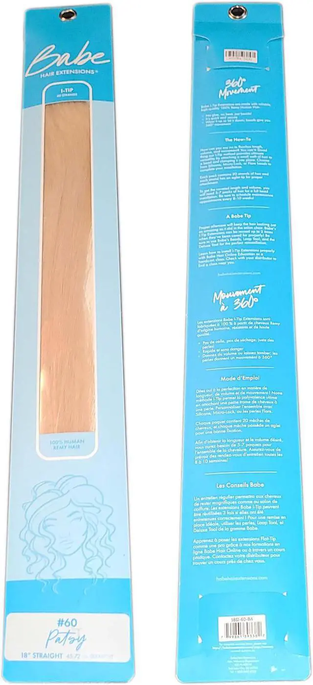 Babe I-Tip Pro 18 Inch #60 (Patsy) Hair Extensions Straight Color 20 Pieces Ounce Gram These hair extension strands are easy to install. They offer 360-degree movement of I-Tip Extensions. This helps to increase hairs volume, length, and versatility. This amazing method has absolutely no chemicals, no glue, and no heat. The beads are easy to hide and are available in 5 different colors. Microbeads are clamped to securely hold each hair extension strand in place. That means your hair can be long and full without the worry of slippage.