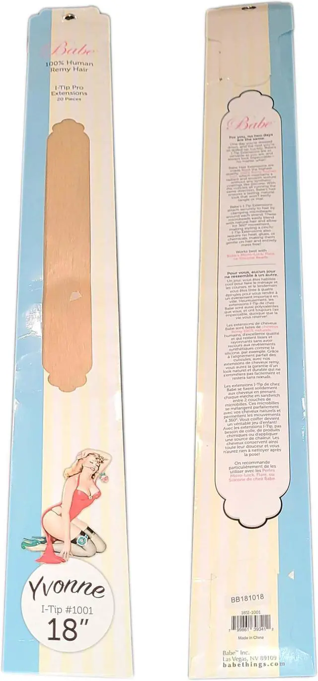 Babe I-Tip Pro 18 Inch #1001 (Yvonne) Hair Extensions Straight Color 20 Pieces Ounce Gram These hair extension strands are easy to install. They offer the 360-degree movement of I-Tip Extensions. This helps to increase hairs volume, length, and versatility. This amazing method has absolutely no chemicals, no glue, and no heat. The beads are easy to hide and are available in 5 different colors. Microbeads are clamped to securely hold each hair extension strand in place. That means your hair can be long and full without the worry of slippage.