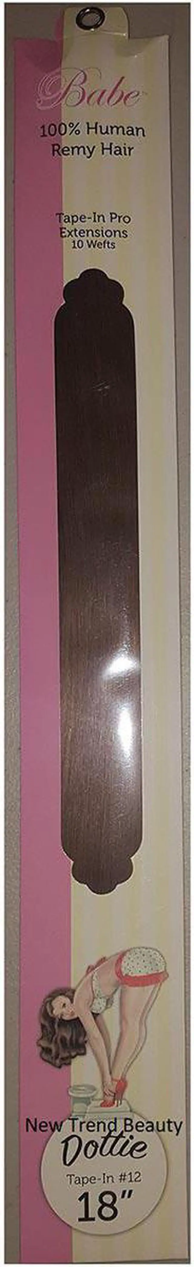 Babe Tape-In 18 Inch #12 (Dottie) Hair Extensions Straight Color 10 Wefts Ounce Gram This revolutionary method is astonishingly fast and the look is shamelessly seamless. It takes as little as 45 minutes to look fabulous. The medical-grade adhesive is designed for hair, so with proper care, tape wont weaken until youre ready to remove it with the help of our trusty Tape-In Bond Remover. Maybe reused up to 3 times. Lasts 3 to 6 months with proper care. Available in 14 inches straight, 18 inches straight, and 22 inches straight.