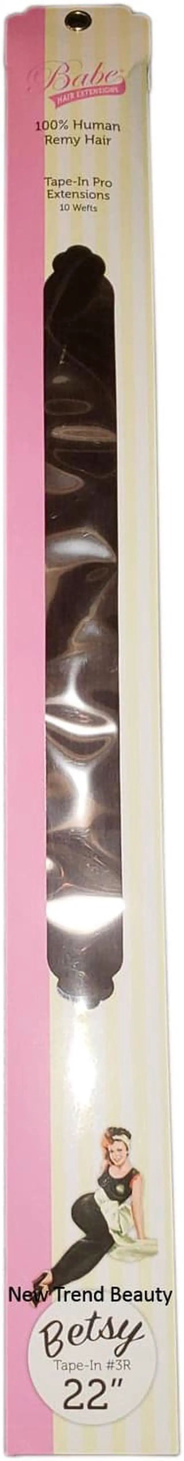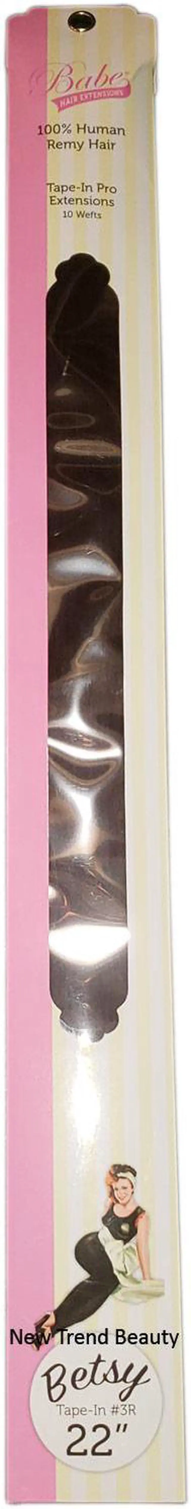 Babe Tape-In 22 Inch #3R (Betsy) Hair Extensions Straight Color 10 Wefts Ounce Gram This revolutionary method is astonishingly fast and the look is shamelessly seamless. It takes as little as 45 minutes to look fabulous. The medical-grade adhesive is designed for hair, so with proper care, tape wont weaken until youre ready to remove it with the help of our trusty Tape-In Bond Remover. Maybe reused up to 3 times. Lasts 3 to 6 months with proper care. Available in 14 inches straight, 18 inches straight, and 22 inches straight.