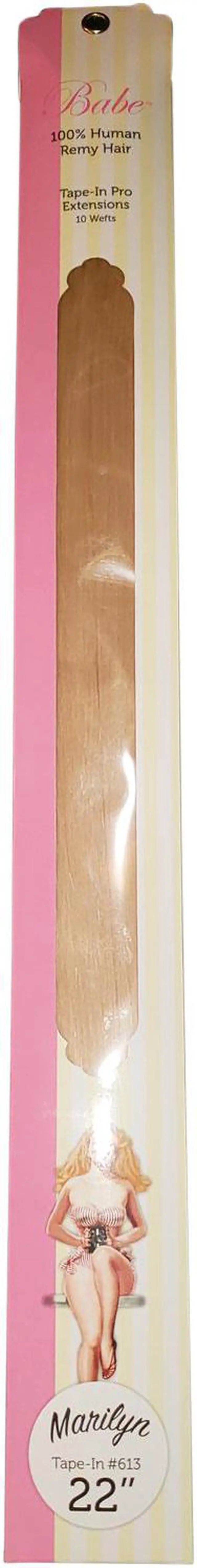 Babe Tape-In 22 Inch #613 (Marilyn) Hair Extensions Straight Color 10 Wefts Ounce Gram This revolutionary method is astonishingly fast and the look is shamelessly seamless. It takes as little as 45 minutes to look fabulous. The medical-grade adhesive is designed for hair, so with proper care, tape wont weaken until youre ready to remove it with the help of our trusty Tape-In Bond Remover. Maybe reused up to 3 times. Lasts 3 to 6 months with proper care. Available in 14 inches straight, 18 inches straight, and 22 inches straight.