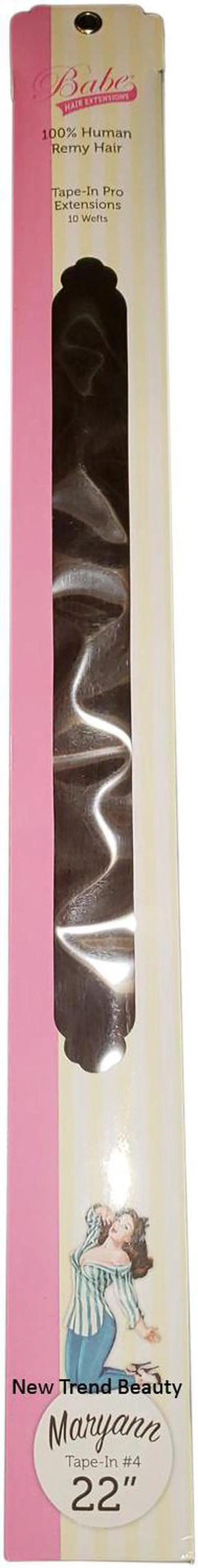 Babe Tape-In 22 Inch #4 (Maryann) Hair Extensions Straight Color 10 Wefts Ounce Gram This revolutionary method is astonishingly fast and the look is shamelessly seamless. It takes as little as 45 minutes to look fabulous. The medical-grade adhesive is designed for hair, so with proper care, tape wont weaken until youre ready to remove it with the help of our trusty Tape-In Bond Remover. Maybe reused up to 3 times. Lasts 3 to 6 months with proper care. Available in 14 inches straight, 18 inches straight, and 22 inches straight.