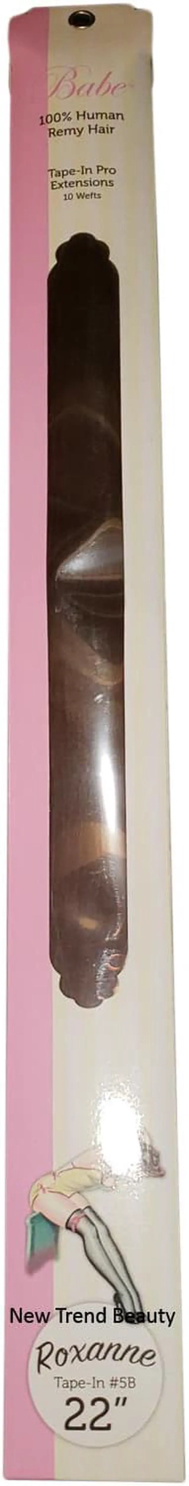 Babe Tape-In 22 Inch #5B (Roxanne) Hair Extensions Straight Color 10 Wefts Ounce Gram This revolutionary method is astonishingly fast and the look is shamelessly seamless. It takes as little as 45 minutes to look fabulous. The medical-grade adhesive is designed for hair, so with proper care, tape wont weaken until youre ready to remove it with the help of our trusty Tape-In Bond Remover. Maybe reused up to 3 times. Lasts 3 to 6 months with proper care. Available in 14 inches straight, 18 inches straight, and 22 inches straight.