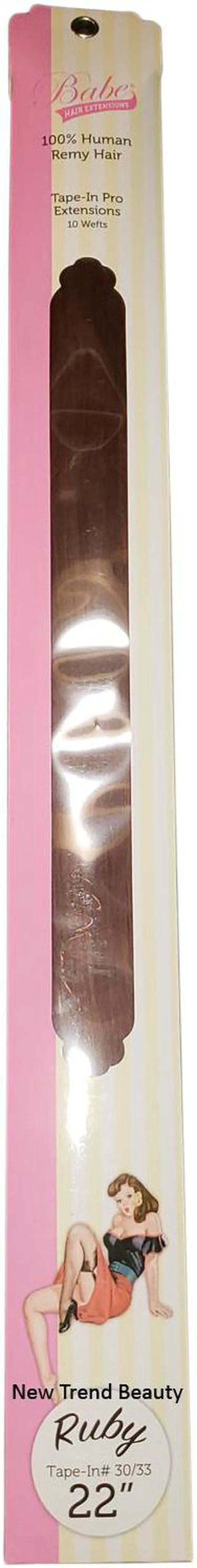 Babe Tape-In 22 Inch #30/33 (Ruby) Hair Extensions Straight Color 10 Wefts Ounce Gram This revolutionary method is astonishingly fast and the look is shamelessly seamless. It takes as little as 45 minutes to look fabulous. The medical grade adhesive is designed for hair, so with proper care, tape wont weaken until youre ready to remove it with the help of our trusty Tape-In Bond Remover. May be reused up to 3 times. Lasts 3 to 6 months with proper care. Available in 14 inch straight, 18 inch straight, and 22 inch straight.