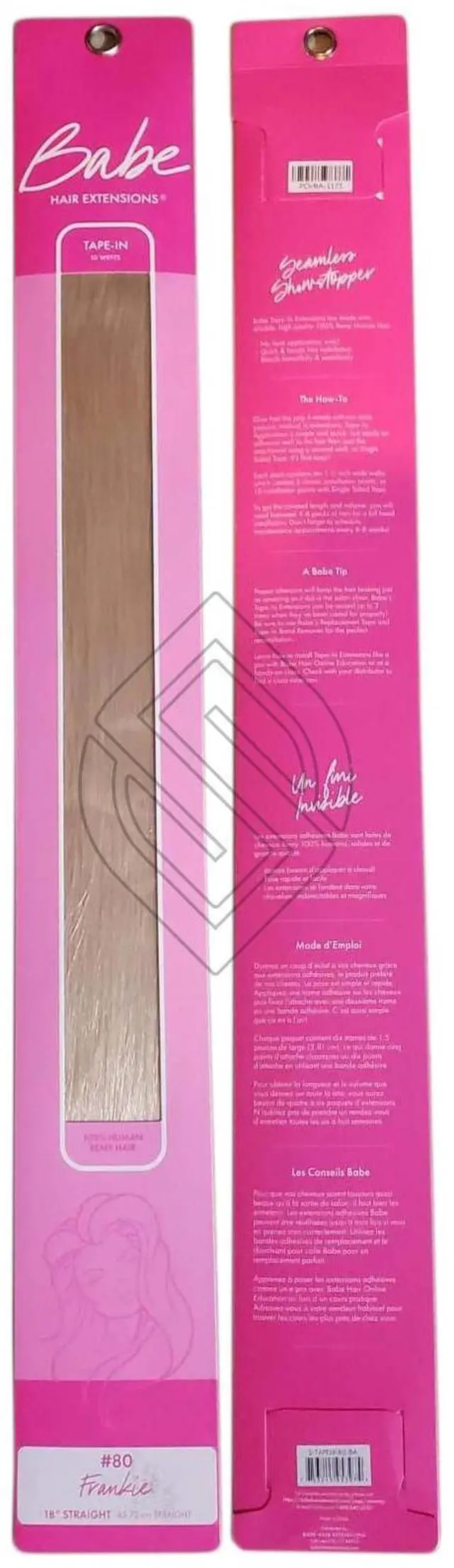 Babe Tape-In 18 Inch #80 (Frankie) Hair Extensions Straight Color 10 Wefts Ounce Gram This revolutionary method is astonishingly fast and the look is shamelessly seamless. It takes as little as 45 minutes to look fabulous. The medical-grade adhesive is designed for hair, so with proper care, the tape wont weaken until youre ready to remove it with the help of our trusty Tape-In Bond Remover. Maybe reused up to 3 times. Lasts 3 to 6 months with proper care. Available in 14 inches straight, 18 inches straight, and 22 inches straight.