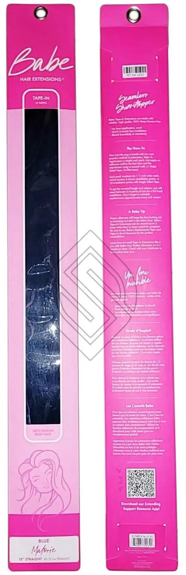 Babe Tape-In 18 Inch #Blue (Malorie) Hair Extensions Straight Color 10 Wefts Ounce Gram This revolutionary method is astonishingly fast and the look is shamelessly seamless. It takes as little as 45 minutes to look fabulous. The medical-grade adhesive is designed for hair, so with proper care, tape wont weaken until youre ready to remove it with the help of our trusty Tape-In Bond Remover. Maybe reused up to 3 times. Lasts 3 to 6 months with proper care. Available in 14 inches straight, 18 inches straight, and 22 inches straight.