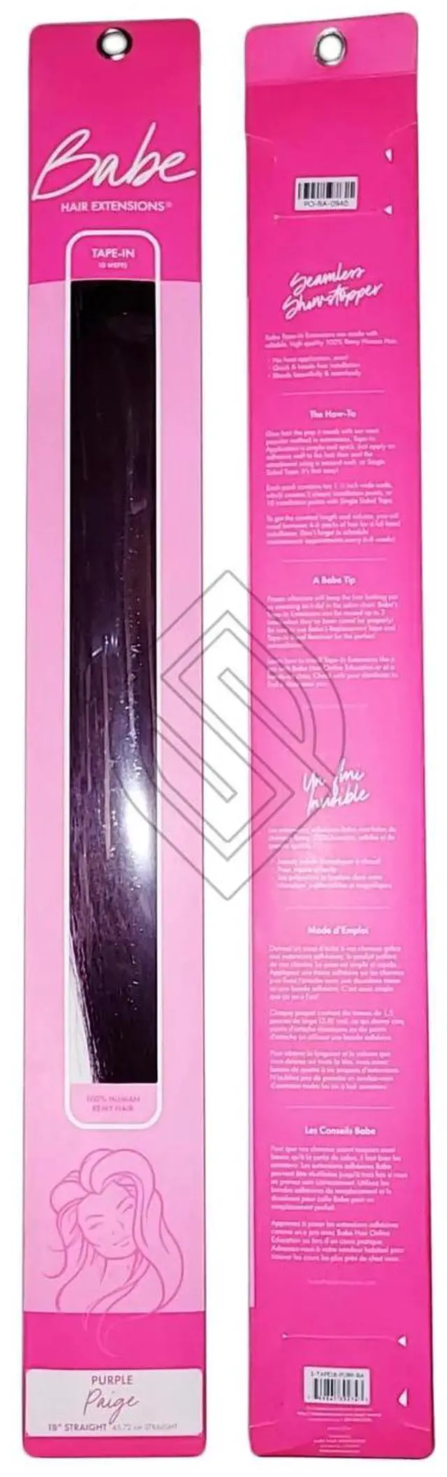 Babe Tape-In 18 Inch #Purple (Paige) Hair Extensions Straight Color 10 Wefts Ounce Gram This revolutionary method is astonishingly fast and the look is shamelessly seamless. It takes as little as 45 minutes to look fabulous. The medical-grade adhesive is designed for hair, so with proper care, tape wont weaken until youre ready to remove it with the help of our trusty Tape-In Bond Remover. Maybe reused up to 3 times. Lasts 3 to 6 months with proper care. Available in 14 inches straight, 18 inches straight, and 22 inches straight.
