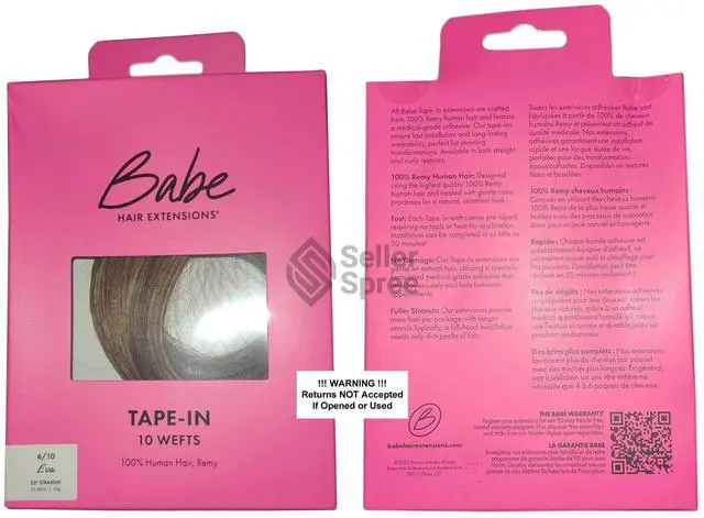 Babe Tape-In 22 Inch #6/10 (Eva) Hair Extensions Straight Color 10 Wefts Ounce Gram This revolutionary method is astonishingly fast and the look is shamelessly seamless. It takes as little as 45 minutes to look fabulous. The medical-grade adhesive is designed for hair, so with proper care, tape wont weaken until youre ready to remove it with the help of our trusty Tape-In Bond Remover. Maybe reused up to 3 times. Lasts 3 to 6 months with proper care. Available in 14 inches straight, 18 inches straight, and 22 inches straight.