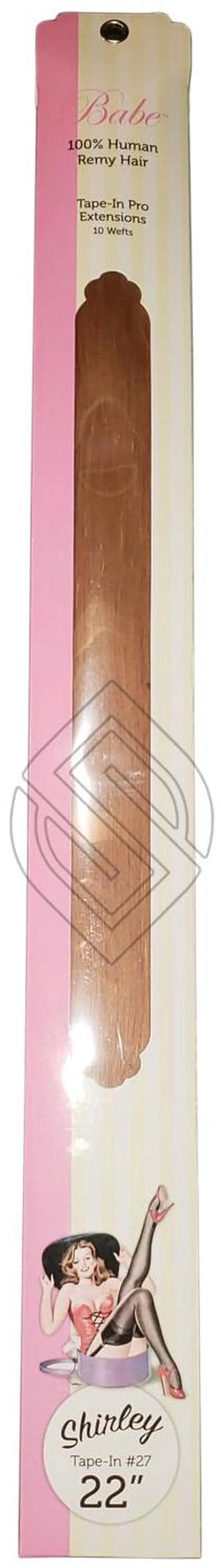 Babe Tape-In 22 Inch #27 (Shirley) Hair Extensions Straight Color 10 Wefts Ounce Gram This revolutionary method is astonishingly fast and the look is shamelessly seamless. It takes as little as 45 minutes to look fabulous. The medical-grade adhesive is designed for hair, so with proper care, tape wont weaken until youre ready to remove it with the help of our trusty Tape-In Bond Remover. Maybe reused up to 3 times. Lasts 3 to 6 months with proper care. Available in 14 inches straight, 18 inches straight, and 22 inches straight.