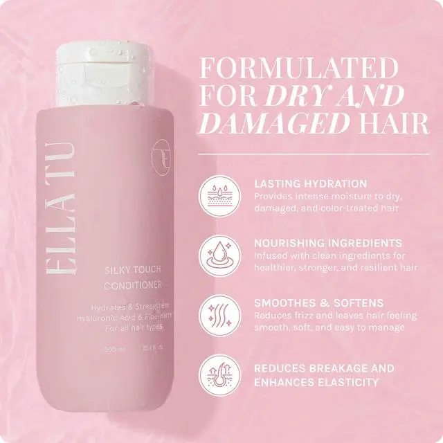 The Elltu Silky Touch Conditioner, the ultimate addition to your hair care routine. Formulated with a blend of moisturizing ingredients such as Hyaluronic acid, Castor oil, Moringa oil, Vitamin E, Hydrolyzed Collagen, and Keratin. Simply apply a generous amount to your hair from root to end after shampooing and rinse thoroughly for optimal results. Our conditioner is free of parabens, sulfates, SLS/SLES, and sodium chloride, making it safe for all hair types, especially dry and damaged hair. At Elltu, we believe in protecting mother nature and our products are packaged in recyclable materials, and we never test on animals.