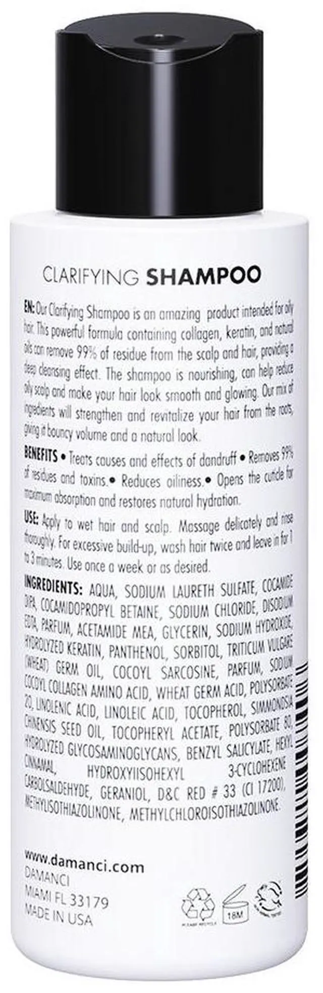 DAMANCI Clarifying Shampoo is an amazing haircare product designed for oily hair. Its powerful, all natural ingredients formula can remove up to 99% of impurities and residue from the scalp and hair, providing a thorough cleansing. The shampoo is nourishing, can help reduce oily scalp and make your hair look smooth and glowing. Plus, the mix of ingredients can strengthen and revitalize your hair from the roots, giving it a bouncy volume and natural look.