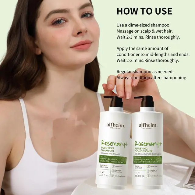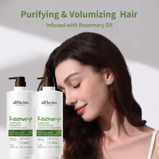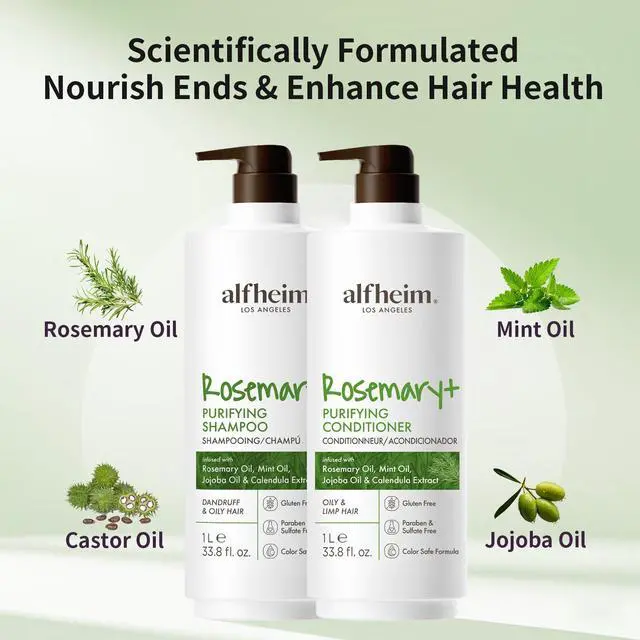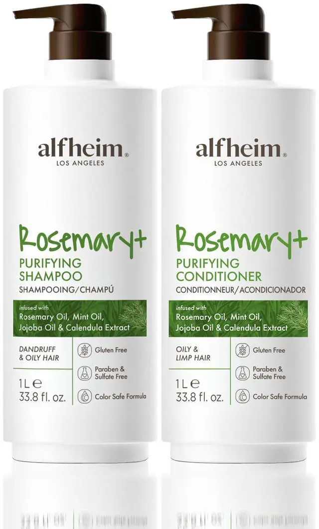 Alfheim Rosemary+ Purifying Shampoo & Conditioner Set | Rosemary & Peppermint Oil for Controling Excess Oil | Calendula & Jojoba for Deep Moistizing and Adding Shine | Sulfate-Free | 33.8 fl oz Each