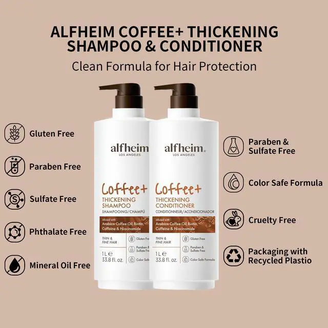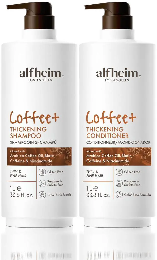 Alfheim Caffeine Infused Shampoo and Conditioner Set | Caffeine, Keratin & Niacinamide | Fortifies Fragile Hair & Control Scalp Balance | Sulfate-Free for Fine & Color Treated Hair | 33.8 Oz Each