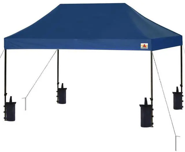 The tent also includes sand bags, stakes, and ropes for stability, and the wheeled carry bag makes transport a breeze. Whether you're hosting a backyard BBQ or attending a festival, this 10x10 ft. canopy provides the perfect shelter for any occasion.