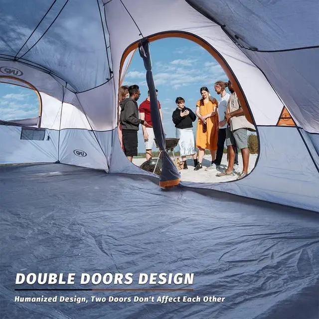UNP Camping Tent 10-Person-Family Tents, Parties, Music Festival Tent, Big, Easy Up, 5 Large Mesh Windows, Double Layer, 2 Room, Waterproof, Weather Resistant, 18ft x 9ft x78in