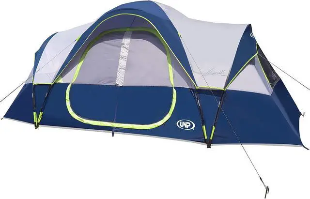 UNP Camping Tent 10-Person-Family Tents, Parties, Music Festival Tent, Big, Easy Up, 5 Large Mesh Windows, Double Layer, 2 Room, Waterproof, Weather Resistant, 18ft x 9ft x78in Dark Blue