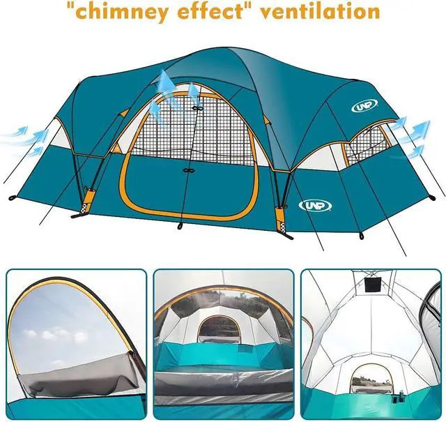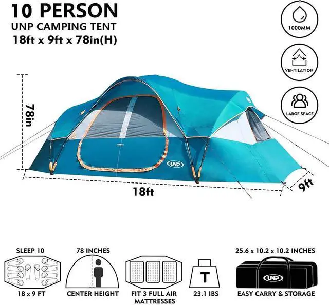 Spacious for 10 Person: Unique 18 ft x 9 ft x78 in, well fitting 10 sleeping bags or 3 queen air mattress, ideal for family camping.