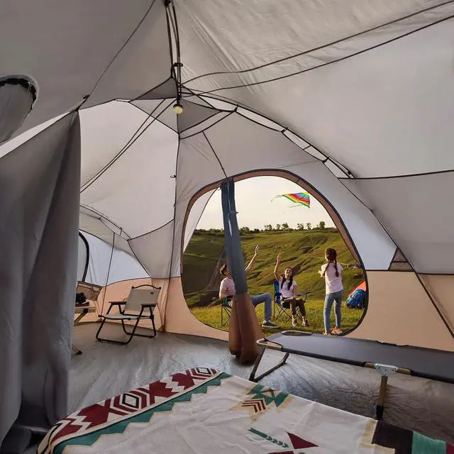 2 Room Tents: Hang one Privacy Divider Curtain from the ceiling, the tent becomes a room cabinet tent with 2 doors, which improves privacy. With a projector, the tent can also become an outdoor cinema by projecting videos on the divider screen.