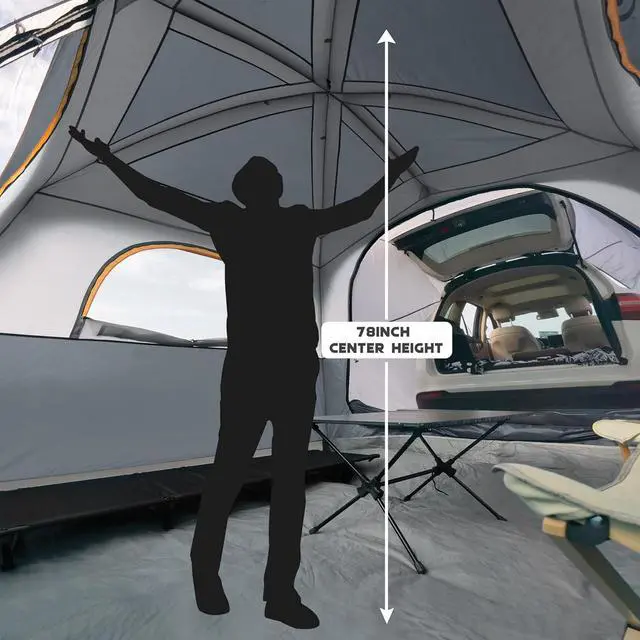 Roomy 6 People SUV Tent: Accommodate the whole family with our spacious tent that comfortably fits 6 people, measuring 10' x 9' x 78" (H) with enough room for 2 air mattresses or 6 sleeping bags, and a center height of 78" for easy standing and changing