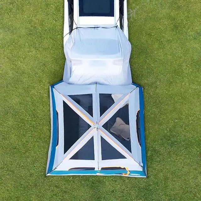 Breathable Mesh Windows: The SUV tent has 4 mesh windows & mesh tent top, which allows the breeze to come in, The tent mesh and doors offer great views and ventilation. Remove the rainfly, and you can easily look at the stars in the SUV tent at night