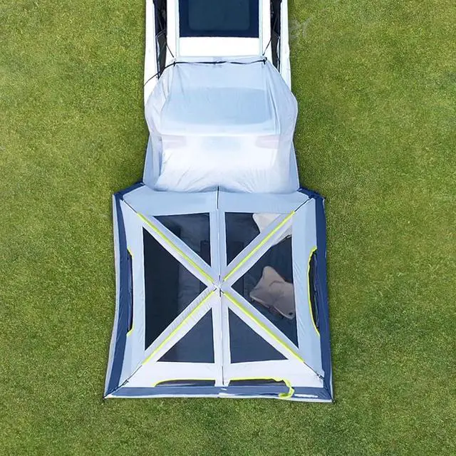 Breathable Mesh Windows: The SUV tent has 4 mesh windows & mesh tent top, which allows the breeze to come in, The tent mesh and doors offer great views and ventilation. Remove the rainfly, and you can easily look at the stars in the SUV tent at night
