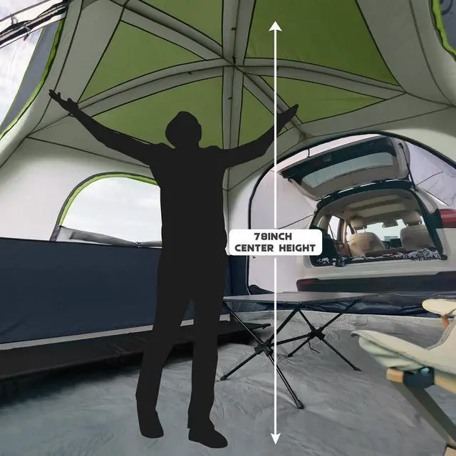 Roomy 6 People SUV Tent: Accommodate the whole family with our spacious tent that comfortably fits 6 people, measuring 10' x 9' x 78" (H) with enough room for 2 air mattresses or 6 sleeping bags, and a center height of 78" for easy standing and changing